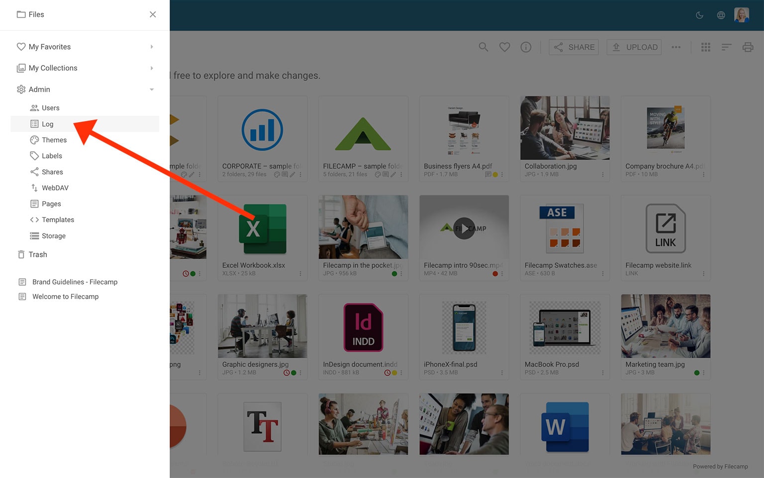 The log is a powerful tool that keeps track of everything that happens in your Filecamp account. You can view, filter, and export activity reports to help keep track of your Filecamp usage.